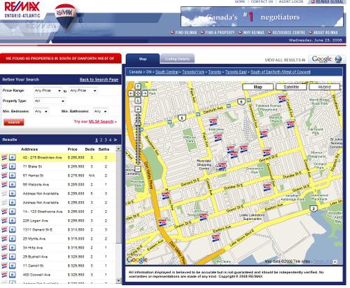 Re/Max has had mapping functionality integrated into their home searches for quite some time now. Here’s a screen shot of their website.