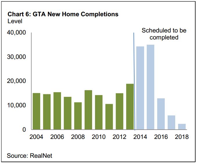 Anyone who keeps a close eye on Toronto’s real estate market knows that there are a couple of reasons why we are not going to see 70,000 condo completions over the next two years, even though the above Realnet chart suggests we might.