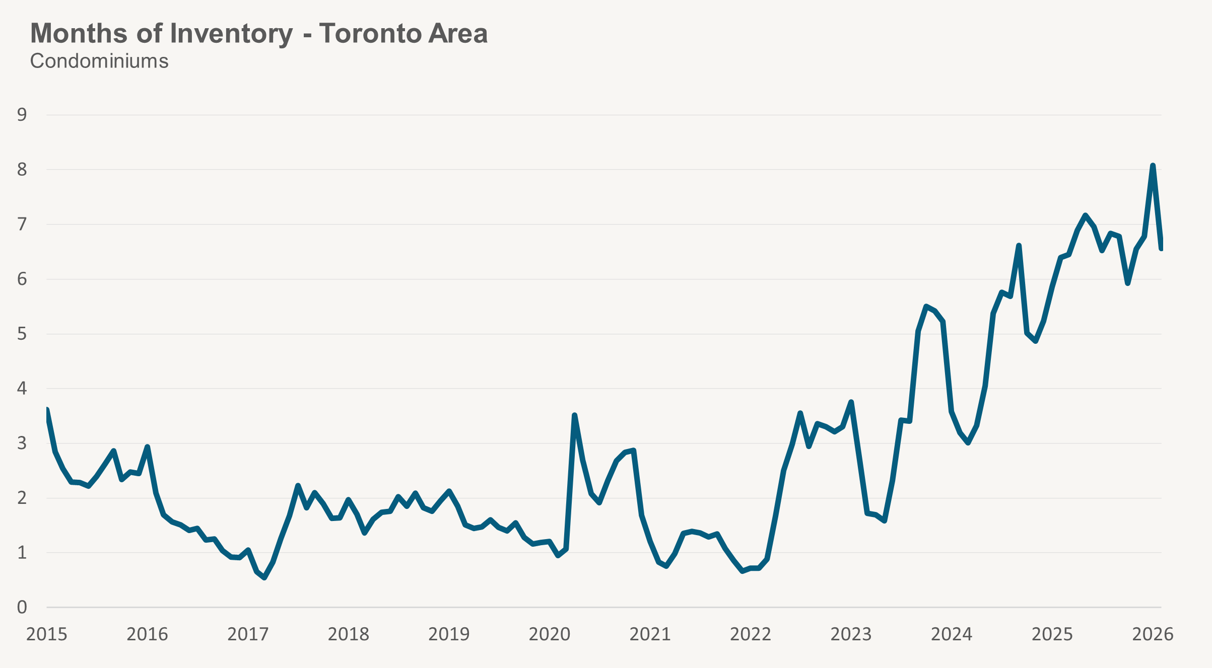 Condo months of inventory increased to 6.6 MOI in January.