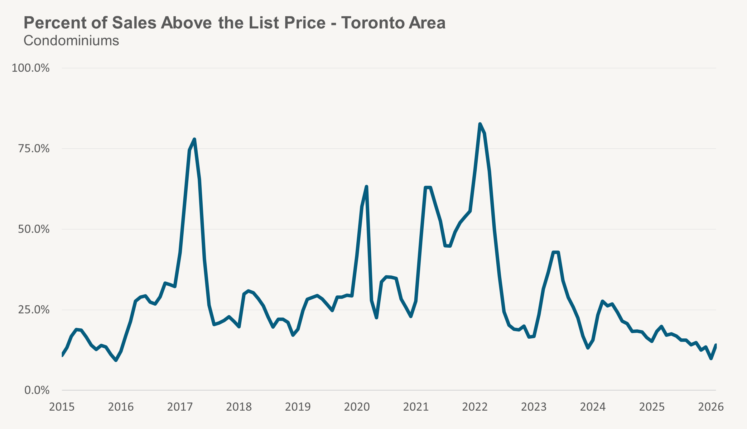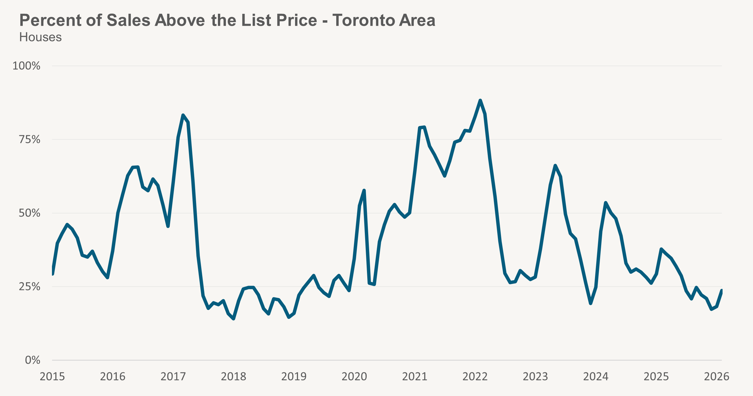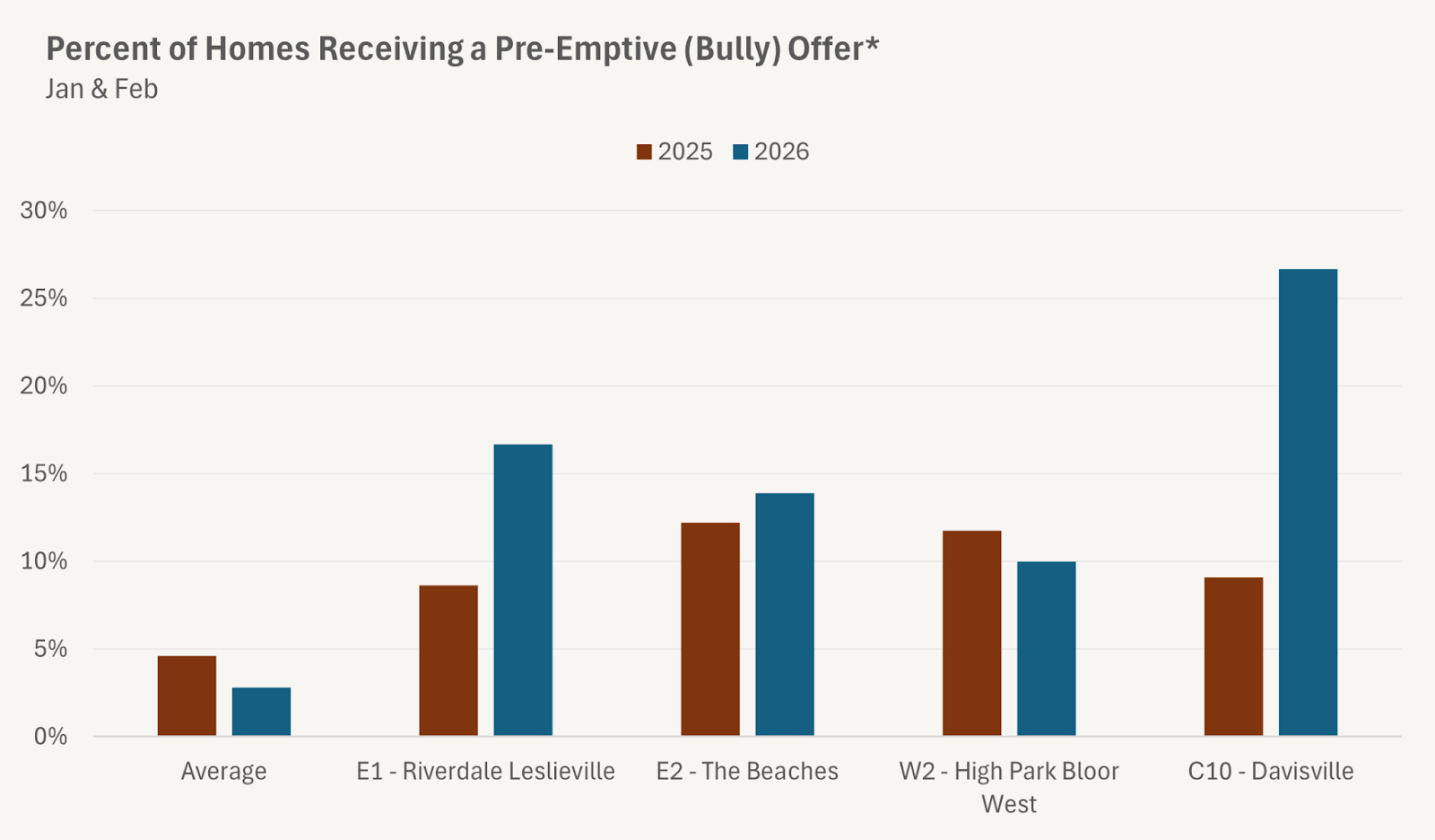 In a handful of neighbourhoods in Toronto, the market feels intensely competitive. A large share of homes are selling over asking. Many are selling quickly. Some are attracting pre-emptive offers within days of hitting the market.