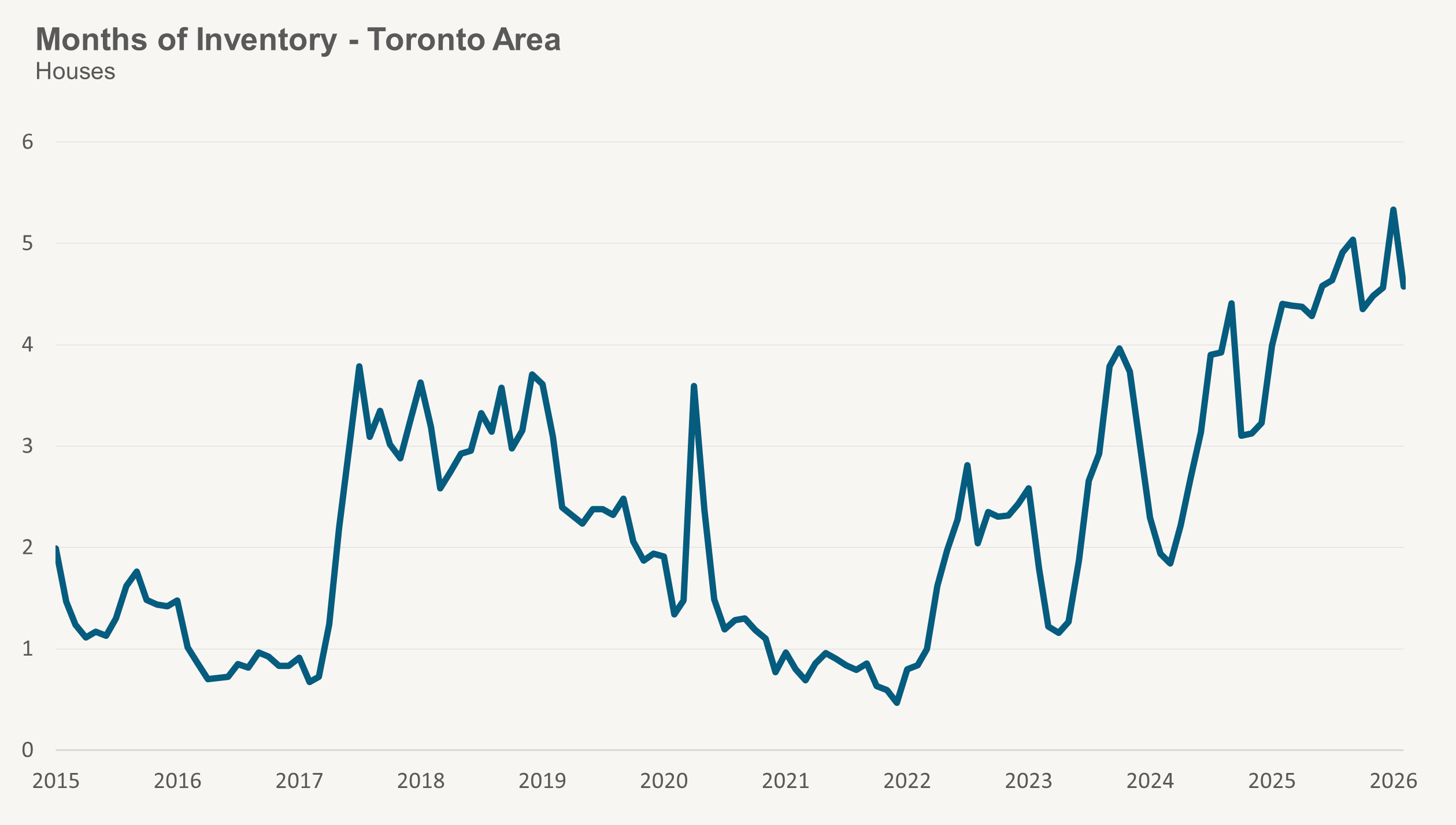 The MOI for houses fell to 4.6 in January.