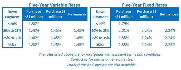 The Bottom Line: Five-year fixed and variable mortgage rates held steady again last week.