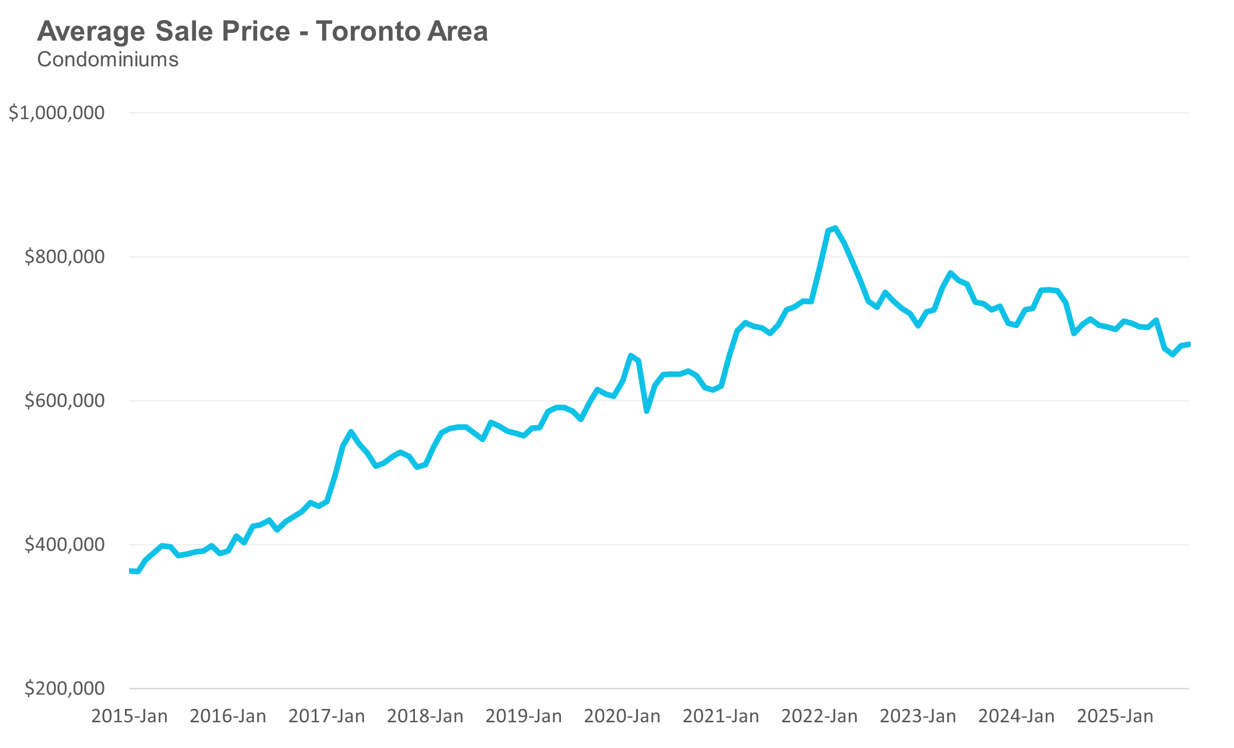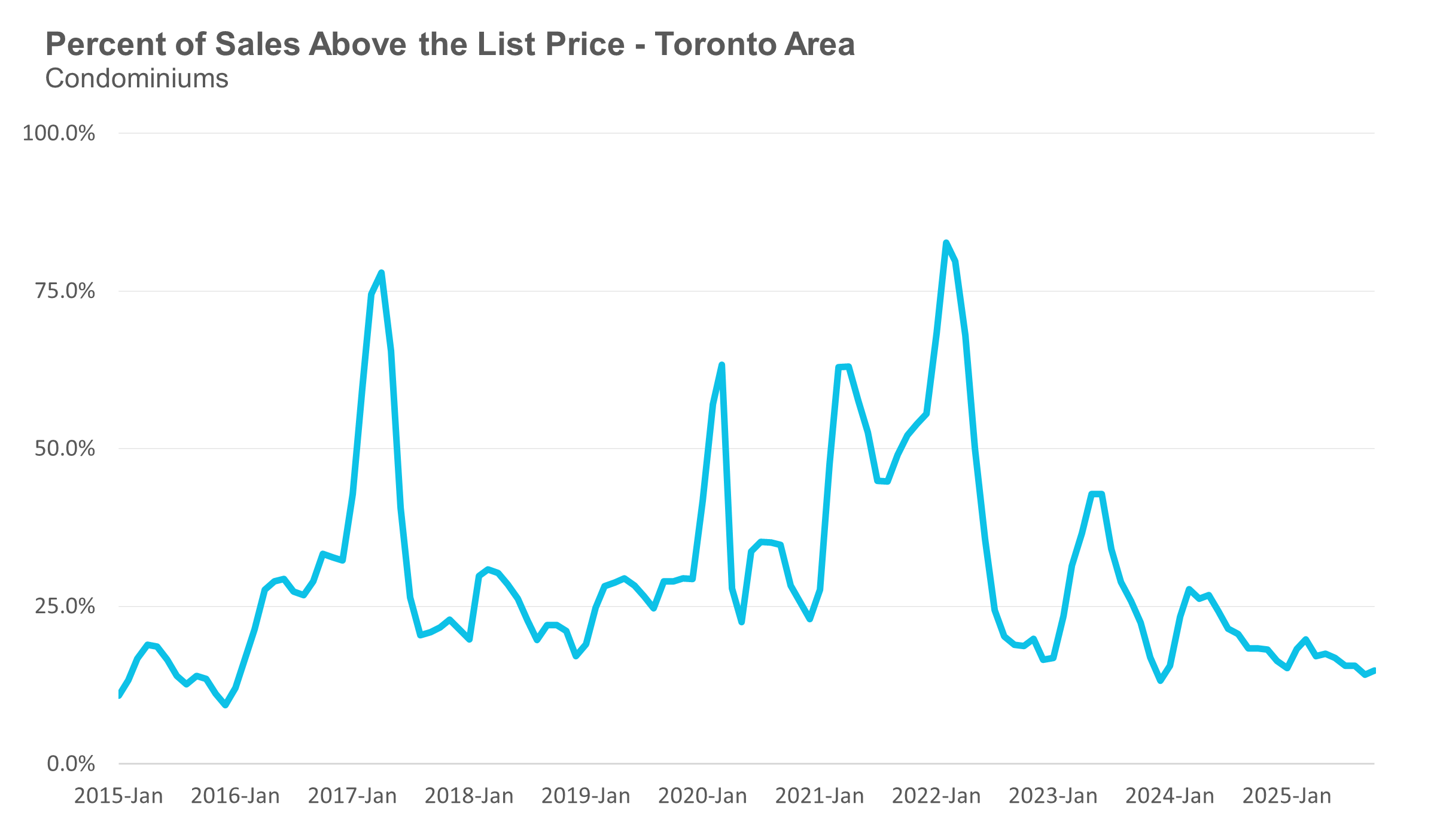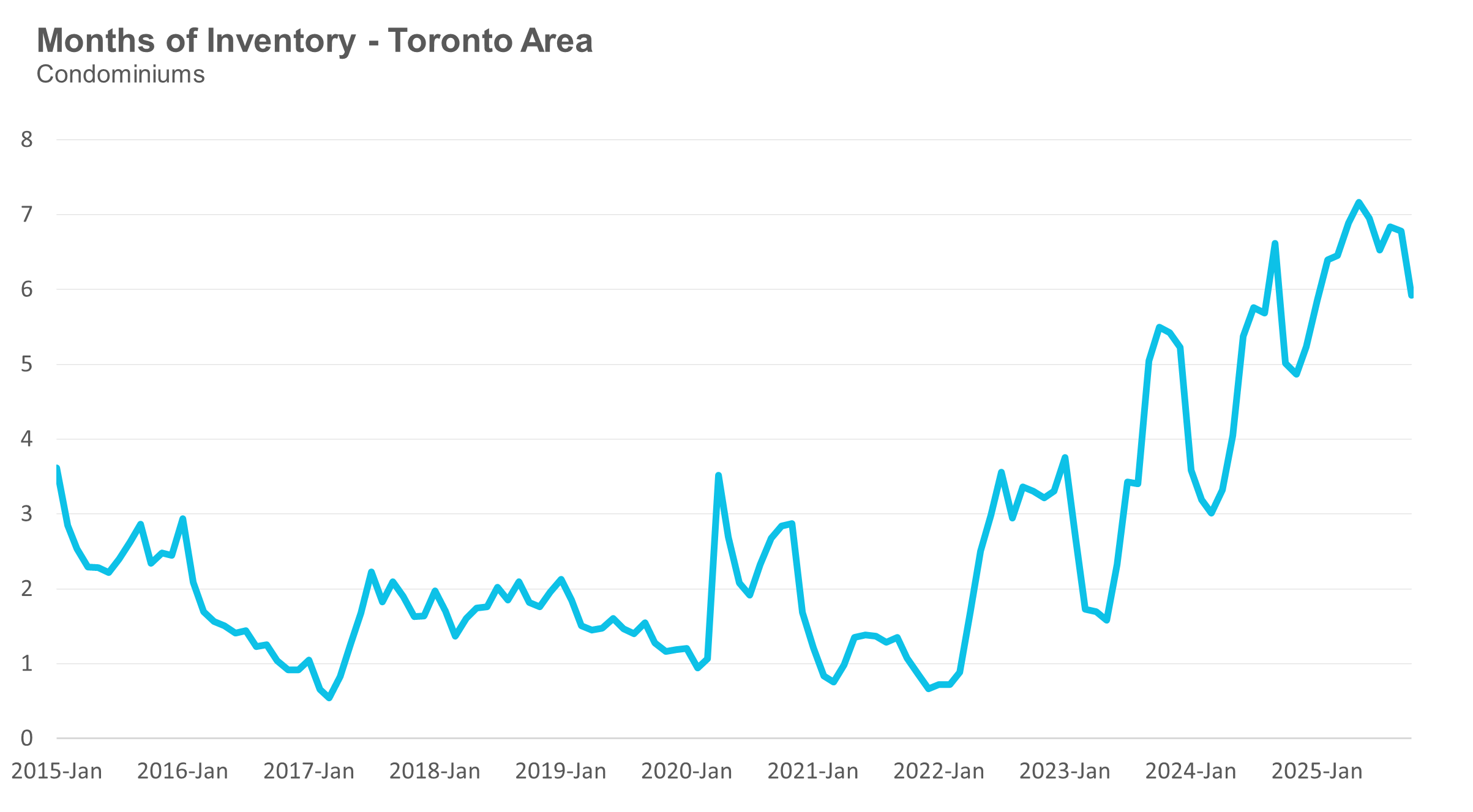 Condo (condominiums, including condo apartments, condo townhouses, etc.) sales in the Toronto area in October 2025 were down 7% compared to the same month last year.