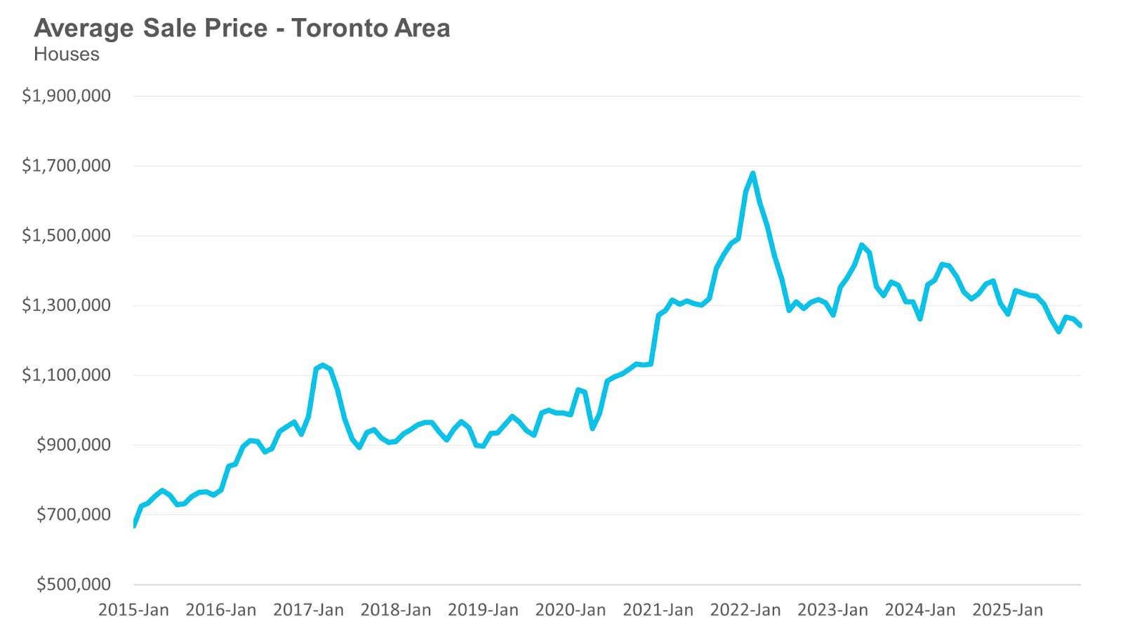The average price for a house in November 2025, $1,241,583, was down 9% from the same month last year.
