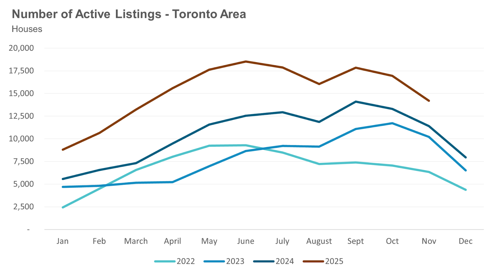 The number of houses available for sale (“active listings”) was up 25% in November compared to the same month last year.