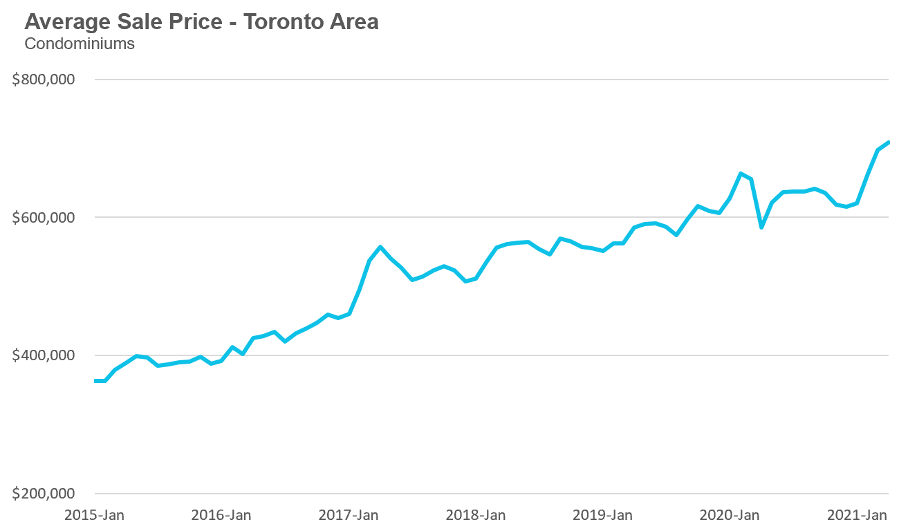 Average condo prices were in the low $600K range during the fourth quarter of 2020 and have now surpassed $700K in April.